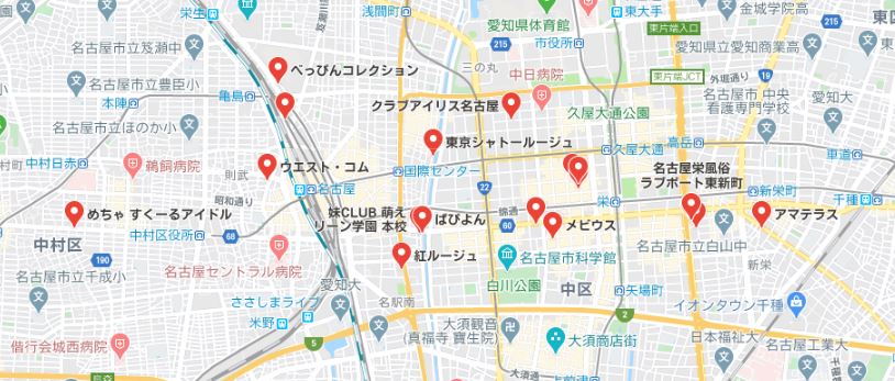 都内であれば新宿や池袋の繁華街にある風俗ですが、名古屋では主婦や子供が普通に歩くような場所にしっかり店舗ヘルスがあります(笑)