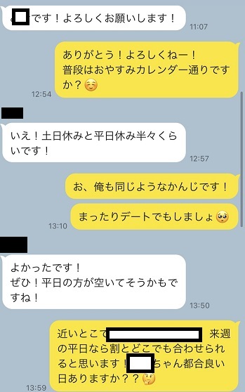 そこからはスグにデートの日程を調整し、彼女との初アポが決まりました!!