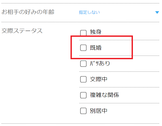 ここで既婚の女性を選んで条件指定しましょう!!