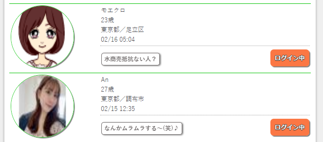 直接女の子にメッセージが送れるようですが・・なんとこの画面、先ほど紹介した「LINEID交換掲示板」と全く同じでした(笑)
