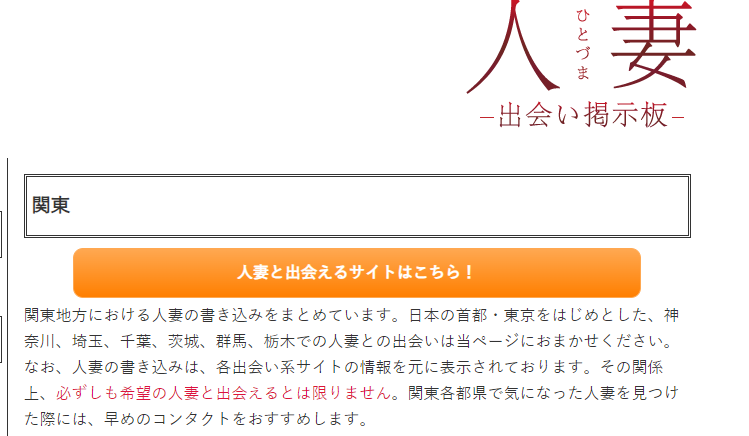 こちらは関東県内にすんでいる人妻と出会えるということを謳っているサイトですが、「必ずしも人妻と出会えるとは限りません」という謎の記載がありました(笑)