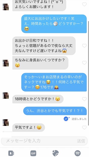 最初はゆっくりメッセージをしたいという彼女とは、マッチングした後も数日は友達のように雑談をしてライン交換。