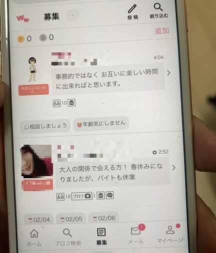 そうすると、打ち子と呼ばれる男性からすぐに返信がきます。
