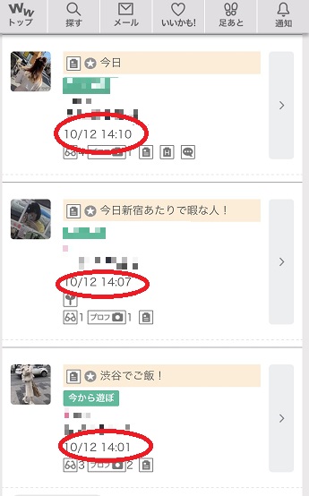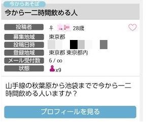 また、待ち合わせ前提の募集なので返信が来た際はスグに出会いやすいです。