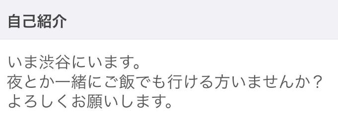 もちろん、自己紹介には「今から渋谷で会える人いませんか??」という募集を書いています。